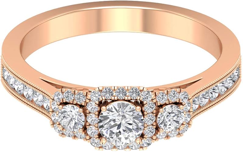 Amazon Com 0 64ct Certified Moissanite Engagement Ring Statement Three Stone Ring De Vs1 Color Clarity Gemstone Halo Gold Ring Unique Wedding Anniversary Ring Jewelry